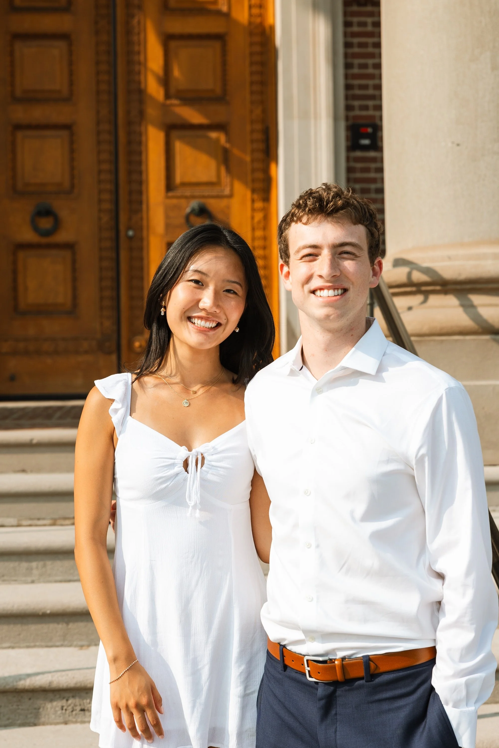 A duo graduation package includes 1 hour of shooting, up to 3 locations on campus, 2 outfits, and around 60-75 edited digital hi-resolution photos with a mix of individual and paired photographs.